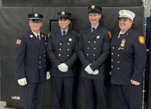 Cedar Grove Firefighters Zachary Williams and FF Jon Marotta completed their initial fire training December 5th 2025 graduating from the Passaic County Public Safety Academy. Pictured above, from the left, Captain Tower, FF Jon Marotta, FF Zachary Williams, Dep. Chief Alex Beauchamp. - Monthly Rope Training